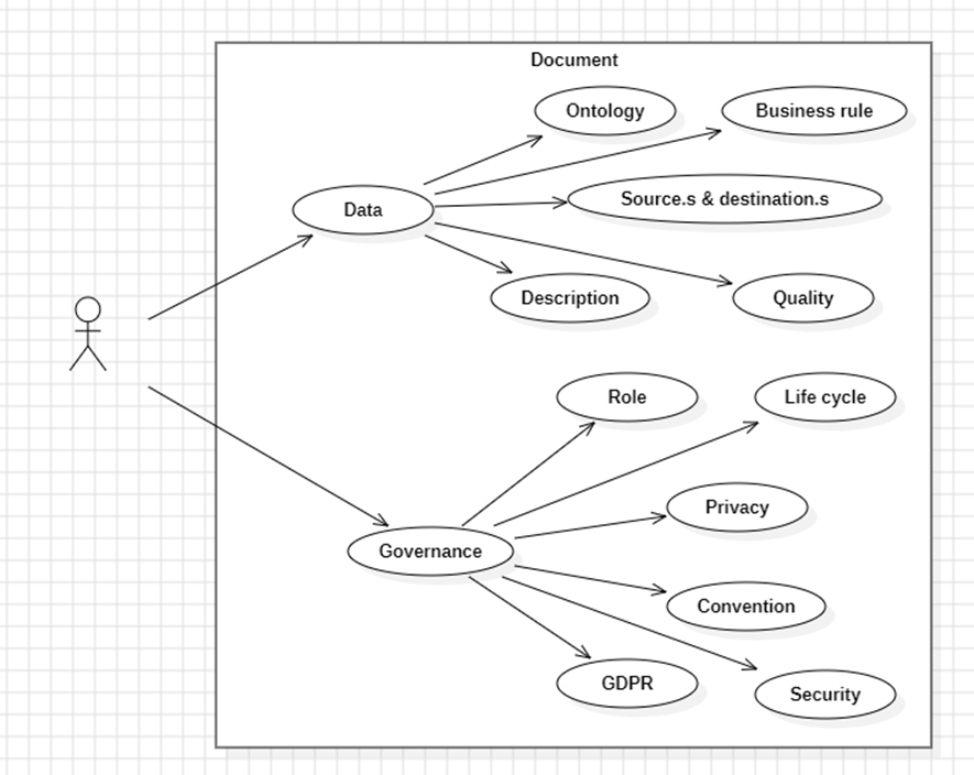Nous l'avons dit, la documentation se décompose en deux parts, une sur les aspects liés à la donnée en tant que telle, et une sur les aspects de gouvernance.