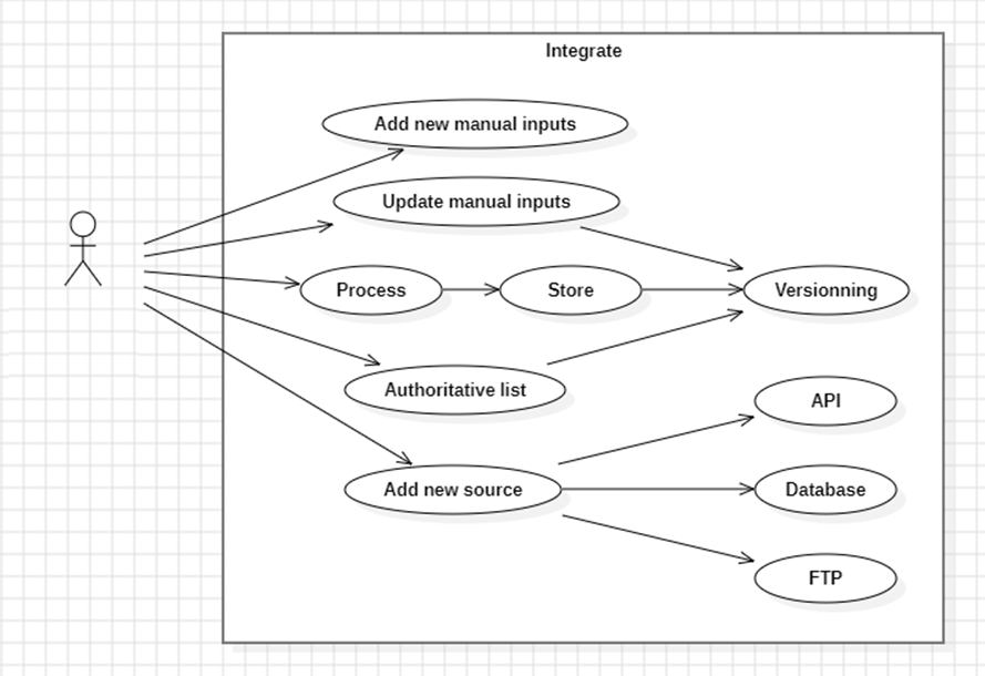 - Les sources de données (data sources), qu'elles soient des API, des bases de données (database), des FTP, ... ;